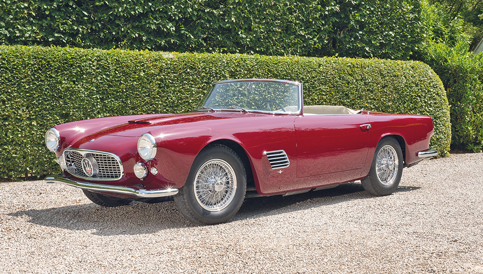 IN FOTO Interessante e d’effetto la proposta datata 1958 della Maserati 3500 GT a tetto aperto. Fu costruita in soli tre esemplari.