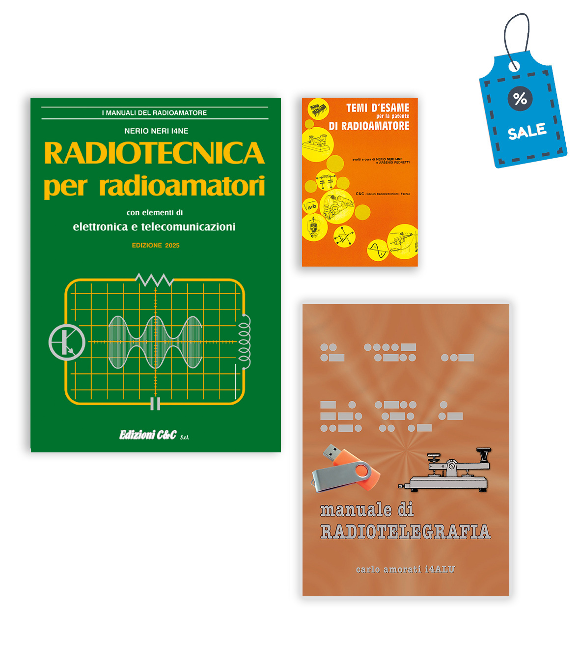 I primi due volumi rappresentano quanto di più completo si può trovare come testi utili al conseguimento della patente di radiooperatore. Il manuale di telegrafia, comprensivo dei cd rom con gli esercizi di ascolto e riproduzione, completa l'offerta.